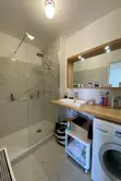 Appartement de type 2 de 47,48m² habitable au 2ème étage exposé Est, composé d'une entrée, une pièce de vie avec cuisine ouverte entièrement équipée (placards, évier, four, plaques induction,hotte aspirante, réfrigérateur) et balcon sans vis-à-vis avec belle vue dégagée, chambre séparée, salle de douche avec machine à laver. WC séparé. Parking libre dans la résidence et cave privative.
