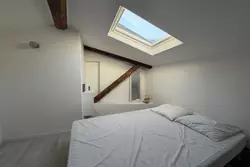 A l'étage, se trouve sous les combles deux pièces, une première faisant office de bureau, et une deuxième chambre ajourée par un Velux.